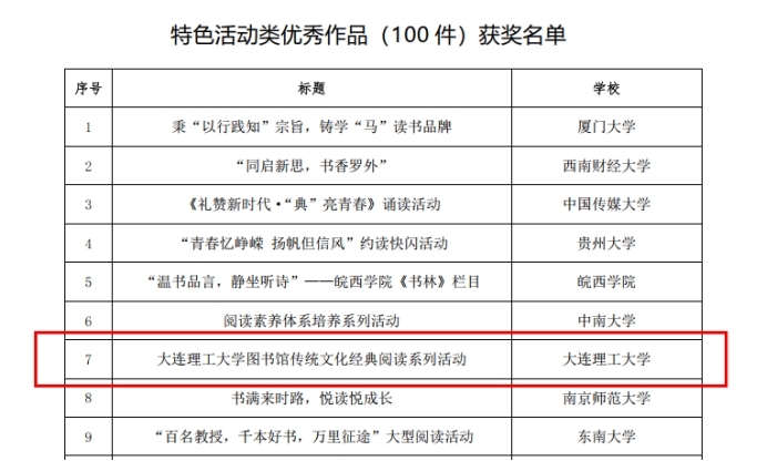 圖書館經(jīng)典閱讀系列活動獲評“悅讀青春”全國“優(yōu)秀特色活動”